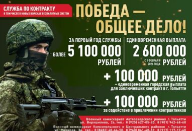 ✅ 100 тыс. рублей – единоврменная городская выплата заключившим контракт с Министерством обороны РФ в г. Тольятти,